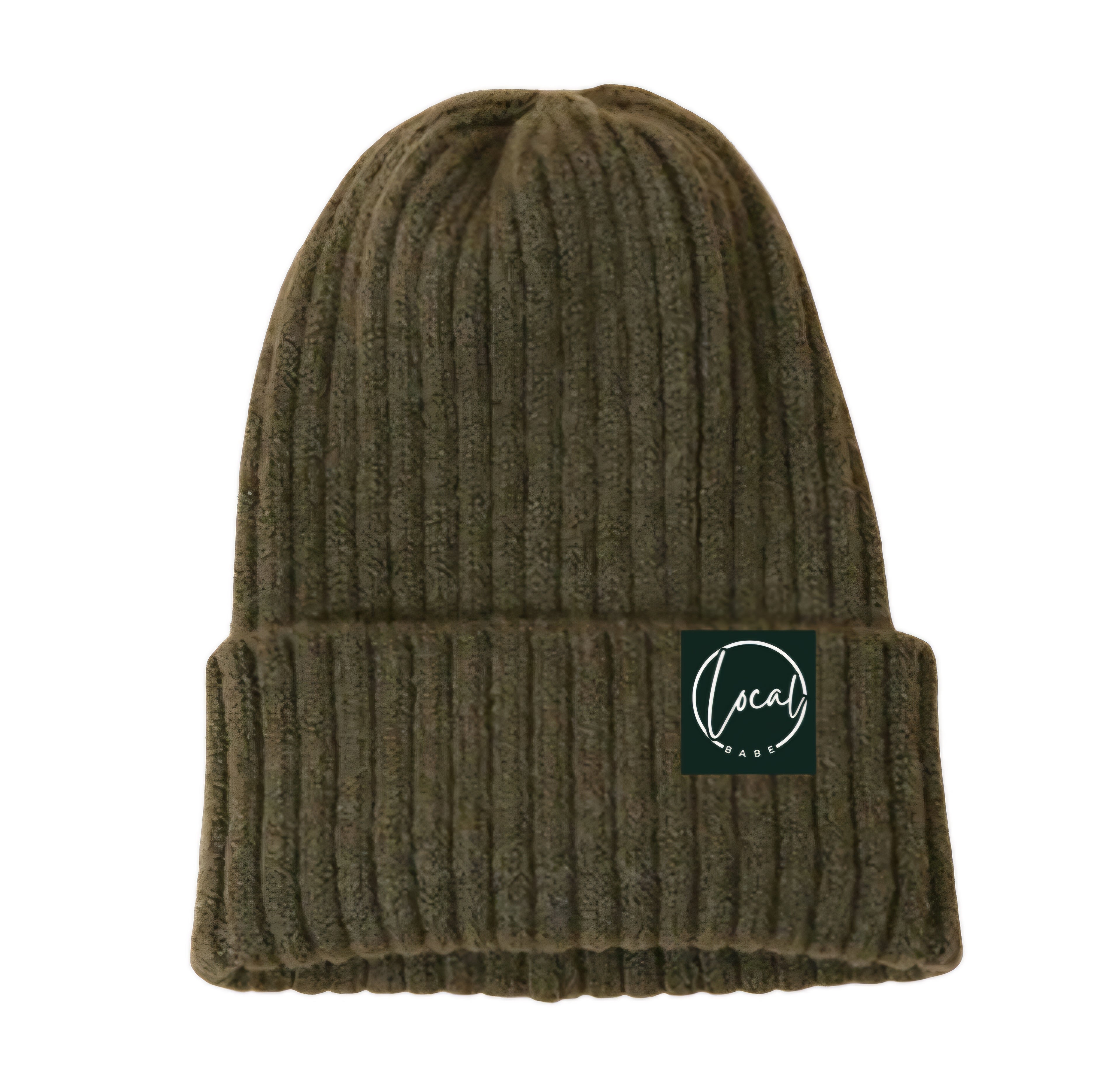 Stay warm and stylish with our Army Green Local Babe Beanie. The ultimate go-to for comfort, this beanie features a cuff fold and a local beanie tag. Keep cozy while effortlessly showcasing your local pride.