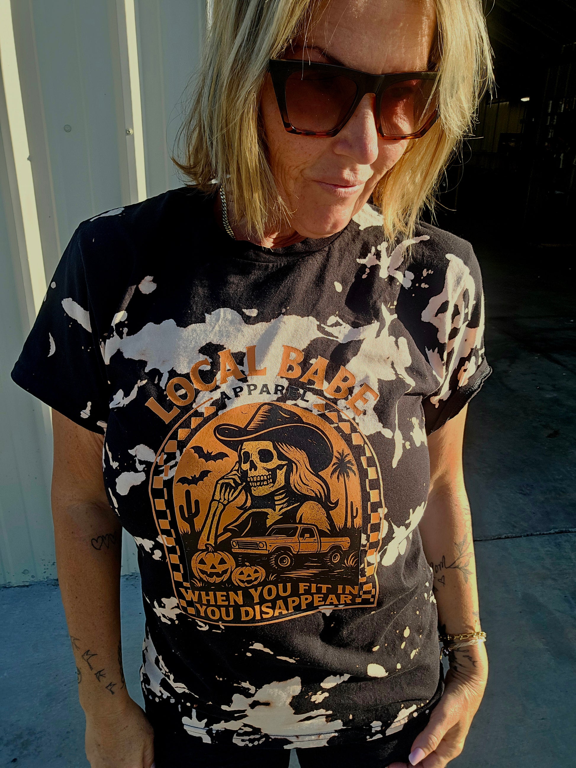 This Halloween t-shirt offers a unisex fit ideal for wearing oversized or true to size, catering to your personal style preference. Each sweatshirt features a unique hand-bleached graphic, ensuring no two garments are exactly alike. Perfect for embracing the spooky season with distinctive, expert-crafted design and comfortable wearability.