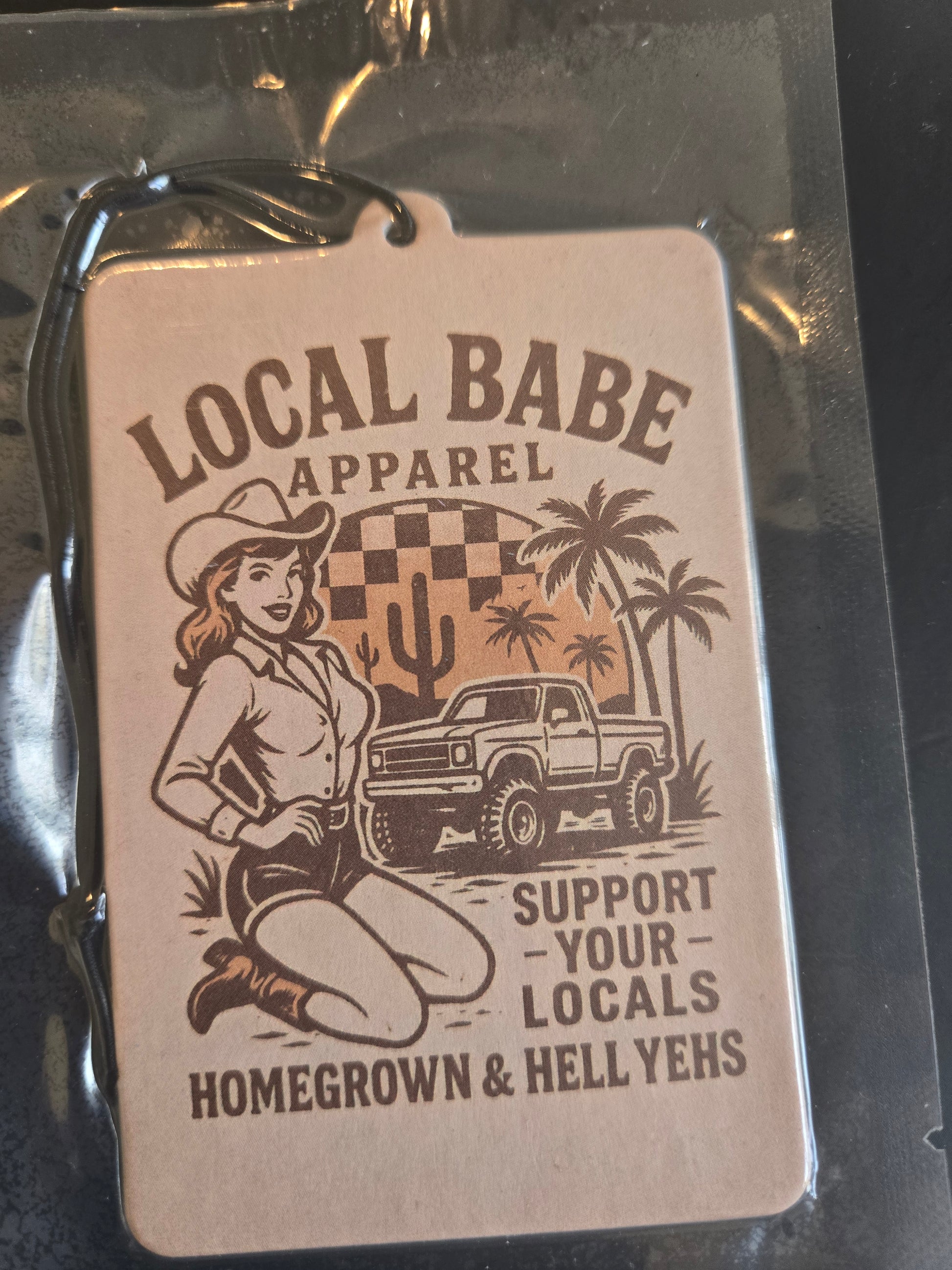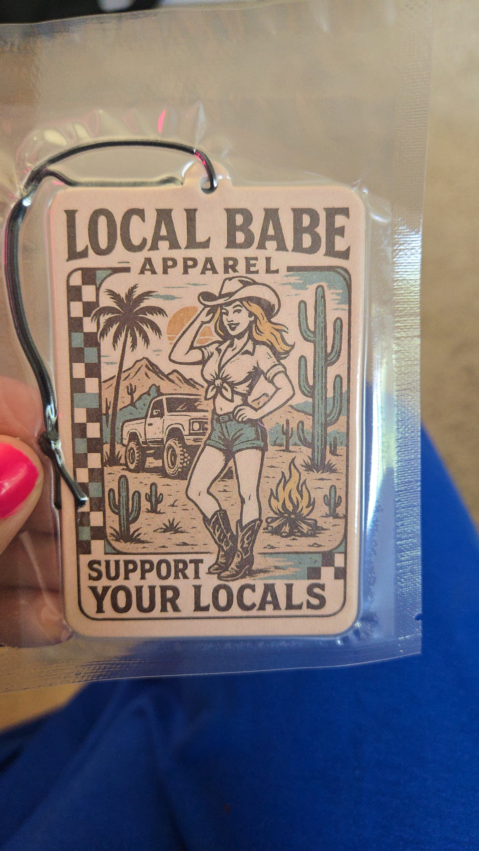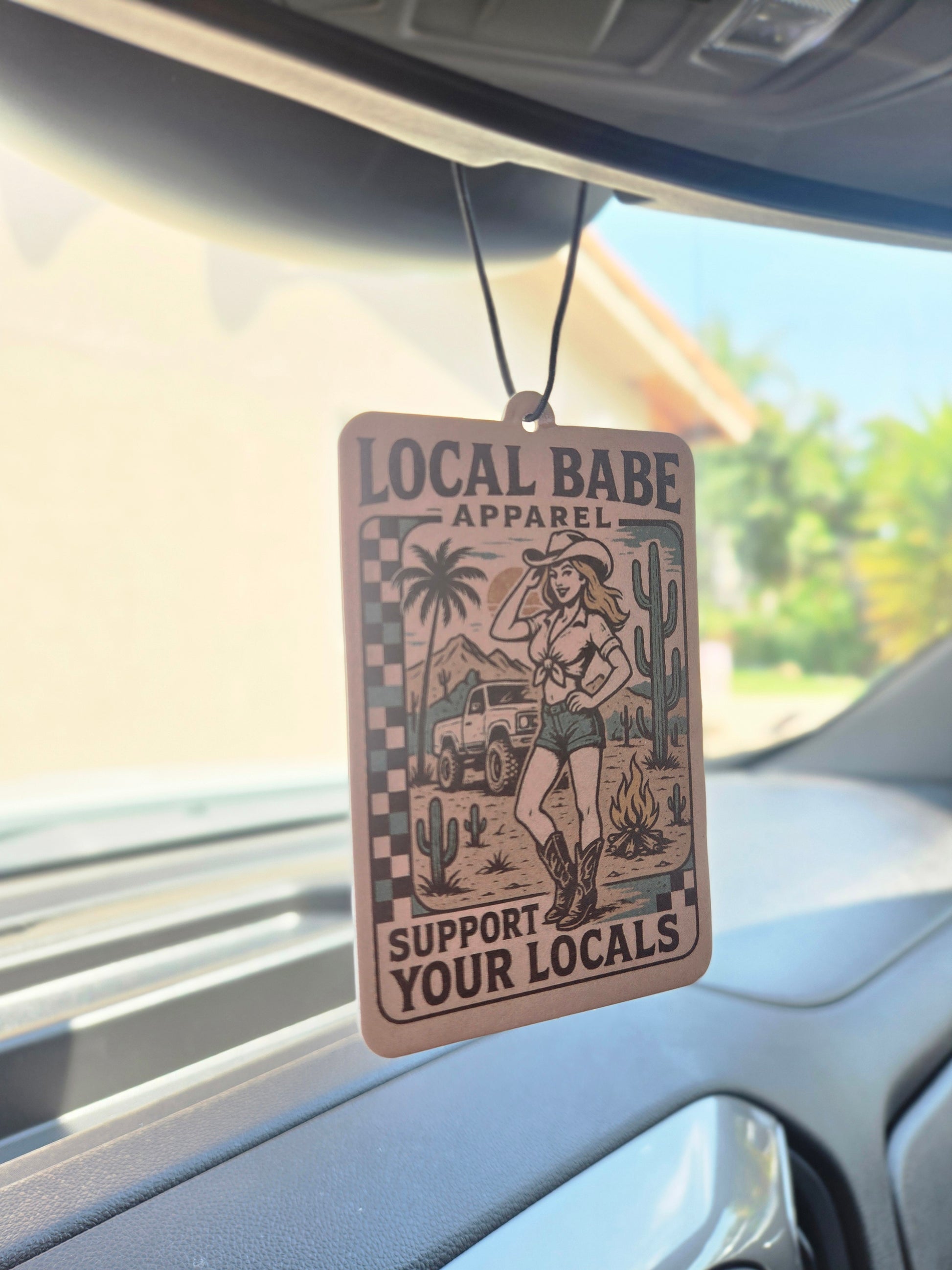 Bring the desert vibes and sunshine wherever you go with our Local Babe Apparel “Support Your Locals” air freshener.